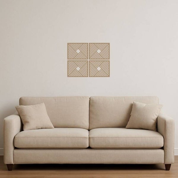 Deze mooie wanddecoratie is eenvoudig op te hangen met bijvoorbeeld dubbelzijdige tape (niet inbegrepen). U ontvangt een malletje waarmee u de panelen eenvoudig kunt ophangen. Perfect voor de woonkamer of elke andere ruimte in huis!